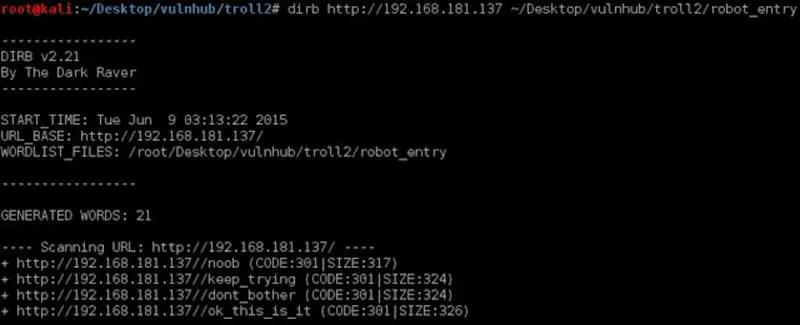 This write-up will walk you through an exploitation of Troll 2 a boot2root VM; the challenge is designed my Maleus. You can download the VM from the following link https://www.vulnhub.com/entry/tr0ll-2,107/