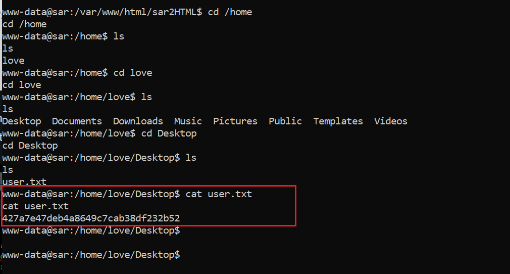 During the enumeration of the target system as a limited user, we got the user flag, which can be seen in the following screenshot: