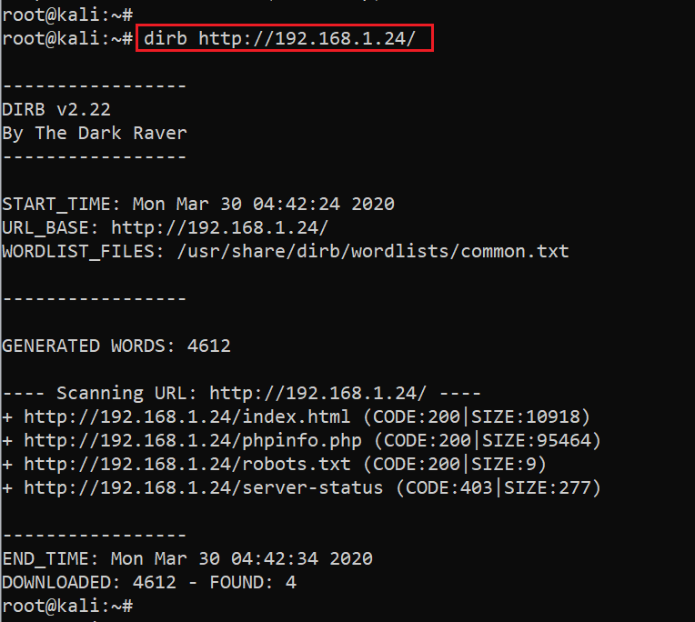 Command Used << dirb http://192.168.1.24>>