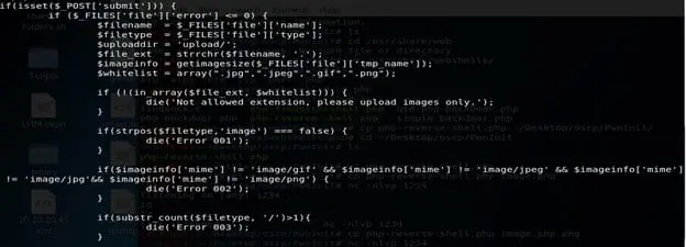 - Following the whitelist defined above, the code also defines the accepted mime types. If no match, we will get Error 2 (which we got above).