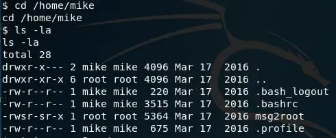 - Hovering into the mike directory, we can see that there is a message for root.