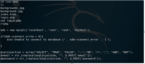 17. Looking into the processes running on the system, we see mysqld running and enumerating /var/ww has a login.php. Looking into the contents of login.php, the page reveals the root password of mysqld. If you see, it also shows the collection of blacklisted keywords to prevent from SQL injection.