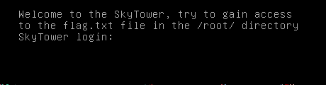 - Welcome to SkyTower:1 This CTF was designed by Telspace Systems for the CTF at the ITWeb Security Summit and BSidesCPT (Cape Town). The aim is to test intermediate to advanced security enthusiasts in their ability to attack a system using a multi-faceted approach and obtain the "flag". You will require skills across different facets of system and application vulnerabilities, as well as an understanding of various services and how to attack them. Most of all, your logical thinking and methodical approach to penetration testing will come into play to allow you to successfully attack this system. Try different variations and approaches. You will most likely find that automated tools will not assist you. We encourage you to try it our for yourself first, give yourself plenty of time and then only revert to the Walkthroughs below. Enjoy! Telspace Systems @telspacesystems