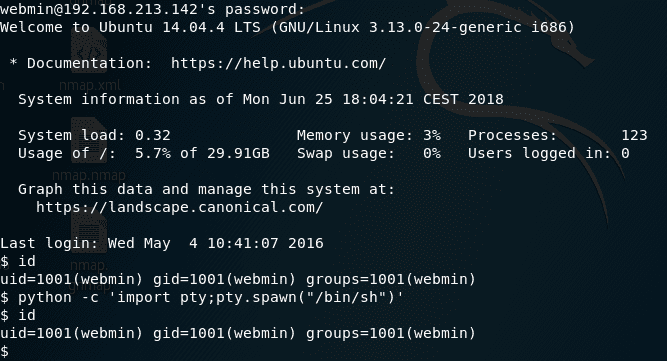 21. But now what do we do with this information? If you remember, in the first step we also identified port 22. So let’s try SSH with user webmin and password webmin1980.