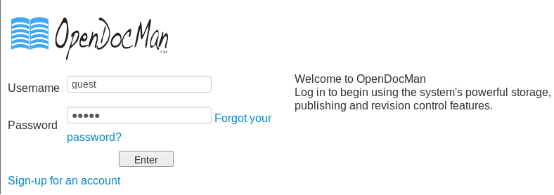 7. Browsing to that link reveals the webpage maintained by OpenDocMan software.