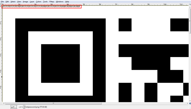 Oh! This is the password for uploading files. We tried this password for uploading a file, but it didn't work. So what is the use of this password "look deeper"? Where do we look? We looked here and there in the whole application but can't find anything. Then we started to look into the image. The clue was "look deeper", so we started to zoom the image larger and larger. Is there any password hidden in the image? No, but there are some pixels on the top left side.