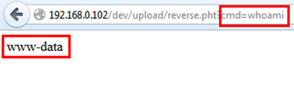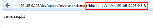We will parse all our commands from the cmd parameter. We uploaded this file as a reverse.pht and browse it from the uploaded directory.