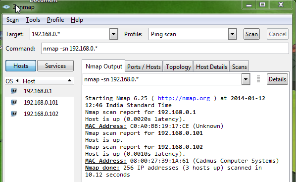 As can be seen in the above figure, Nmap detected three hosts: The IP 192.168.0.1 is my router, the IP 192.168.0.101 is my system's IP, and the IP 192.168.0.102 is our target. Try to open this IP from the browser.