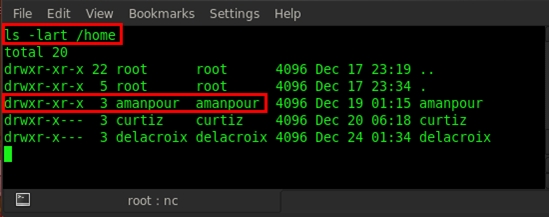 Now let's check the home directory and how many users there are by executing this command: ls -lart /home