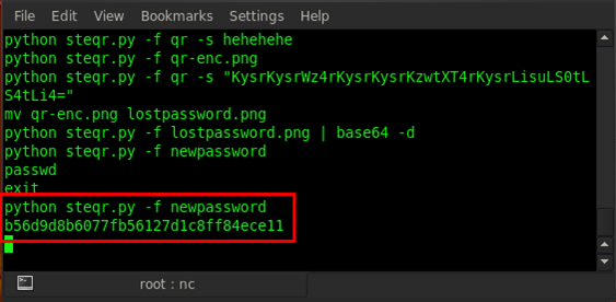 We executed the command python steqr.py -f newpassword and we got a new password.