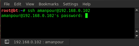 Now we have a password and we tried to login via ssh. Type in ssh amanpour@192.168.0.102 and then enter the new password.