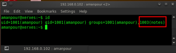We are successfully logged in via ssh. We typed id command for checking all users id and group id and we found that in group there is something called notes. What is that?