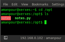 We found only two files: notes and notes.py. We opened that notes.py file by typing cat notes.py