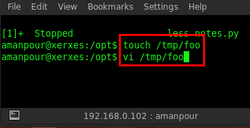 Now we know that any file executed via notes it will execute as curtiz. So what if we executed any shell via this application? Then we first created a blank file in /tmp/ directory by typing touch /tmp/foo and then opened that file by vi command