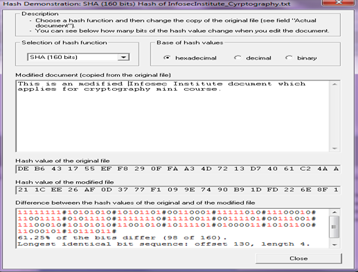 Demonstration of Hashing using CrypTool