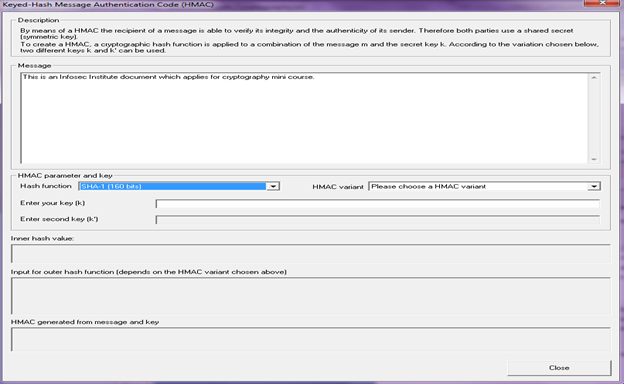 Generation of HMAC using CrypTool