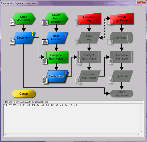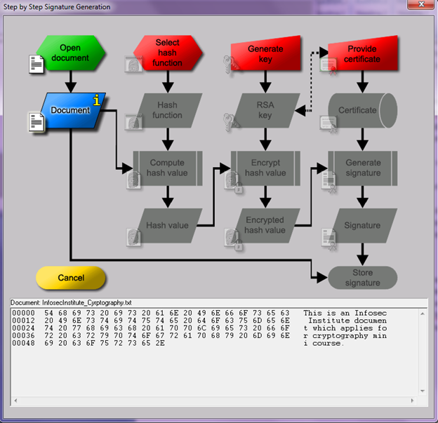 Demonstration of digital signatures using CrypTool
