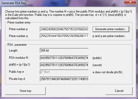 - Next, generate a key pair. We'll generate RSA keys. For RSA key generation, two large prime numbers and a mathematical function are required.