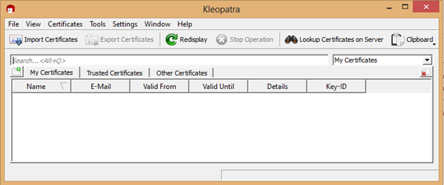 After installing GnuPG , the first step is to learn how to create a certificate. Open GnuPG and Kleopatra. Here's Kleopatra's Certificate Administration screen. It shows all the certificates being created in GnuPG.