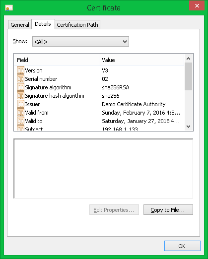 - Double click server.crt to view the server certificate.