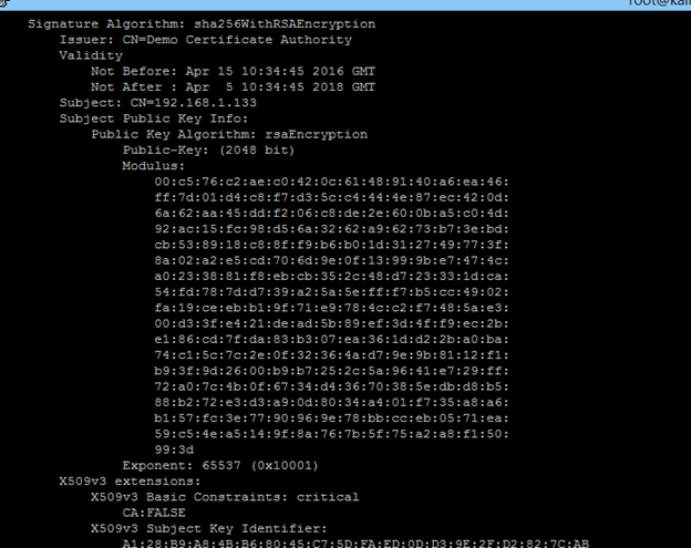 Figure: 11 Details of Server Certificate