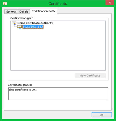 If we open the server certificate, then it opens correctly because we have added its CA certificate in Windows store. The CA chain is verified correctly as shown in the figure.