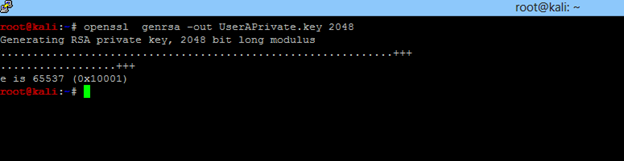 - Create a user private key. Run openssl genrsa -out UserAPrivate.key 2048
