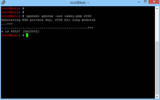 Create a key for CA Certificate. Run openssl genrsa -out cakey.pem 20482048 Bit CA Key is stored into the file cakey.pem