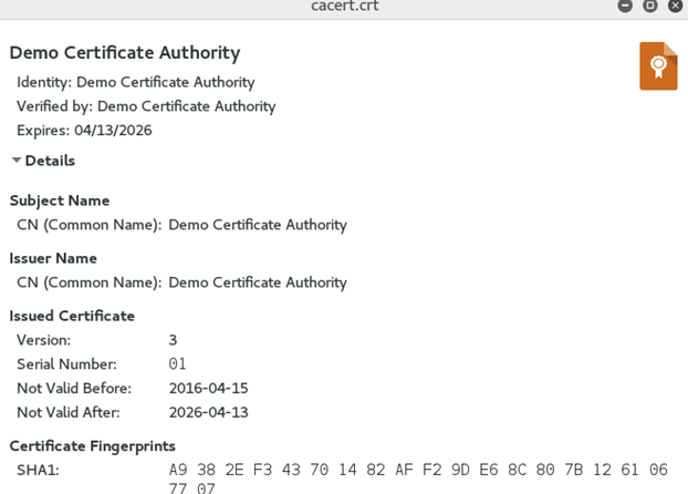 Figure: 7 Details of CA Certificate