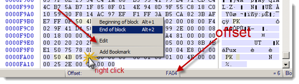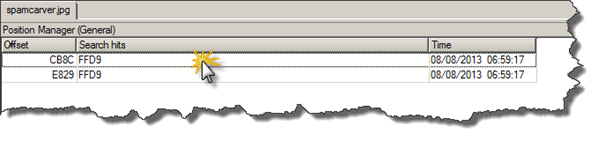 And guess what two hits were found which is not "very" normal, click on the first hit to get to its offset