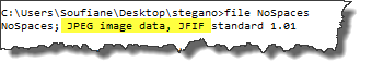 Yes! A file called "NoSpaces" is now created; let's see what kind of files is this: