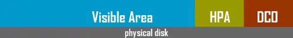 The use of the DCO (Device Configuration Overlay) is another good way to hide potentially incriminating data. It was introduced as an optional feature in the standard of ATA-6. This technique is stealthier than the use of HPA and is also less known. The following image shows a representation of DCO within a physical media.