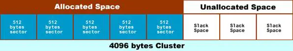 The image below shows a graphical representation of how the slack space can appear within a cluster: