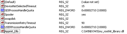 RegSetValueEx(hKey,"Appinit_Dlls",0,REG_SZ,(const