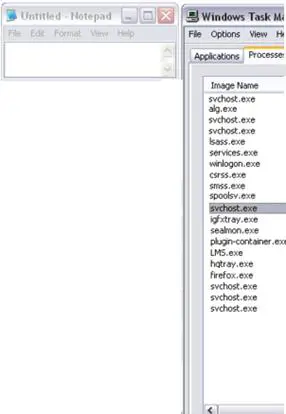 Once the value of the registry key is modified, the result is that the process "notepad.exe" will no longer be shown in software like Task Manager or Process Explorer.