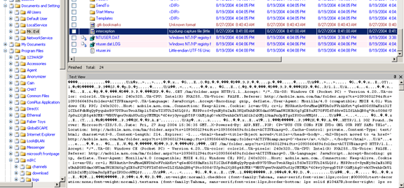 Earlier we have noticed the presence of the sniffing tool 'Ethereal' on this computer. Now the challenge is to locate the packet capture file. I say it is a 'challenge', because in this particular case, the saved packet capture file has no extension and hence proved to be incredibly hard to locate. It was eventually located at the following path [Figure 24]: