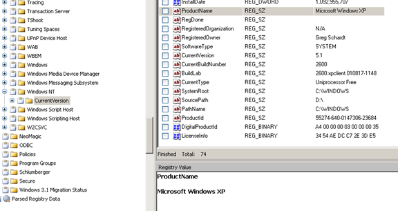 WINDOWS/SYSTEM32/CONFIG/SOFTWARE/MICROSOFT/WINDOWS NT/CURRENT VERSION/PRODUCT NAME