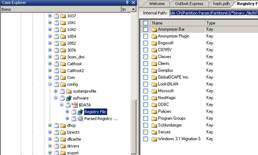 Note: In P2 Commander, you would have to expand 'config->software' and then expand '$DATA' and then 'Registry File'. This would take you to '…/MICROSOFT/WINDOWS