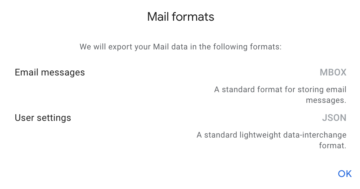 As we can notice, Email messages are available only in MBOX format. Click OK and scroll down to see how to receive exported data.