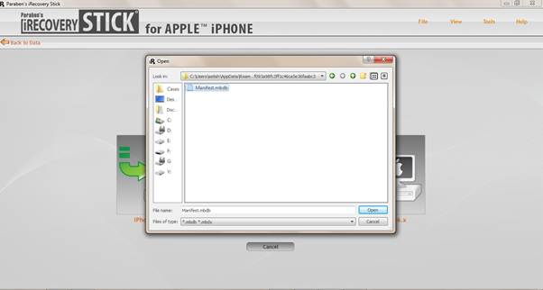 Clicking on the specific iOS version prompts the user to open the existing iTunes backup as shown in the image below. In general, iTunes backup gets stored in these locations: