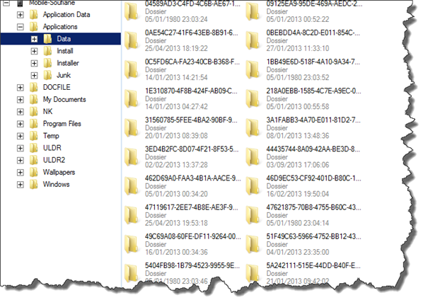 - Application Data, contains Internet Explorer, Outlook, Maps and all data related to installed applications on the phone