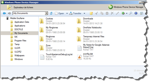 As you can probably guess, the Windows Phone file system is arranged the way a normal desktop windows based file system, just like Windows XP or Windows 7… and it's structured with usual directories reachable from the root directory.