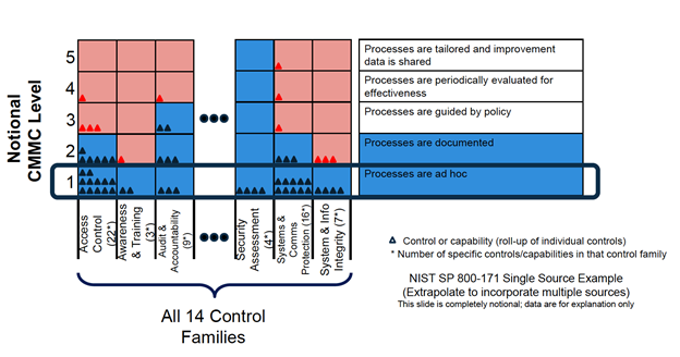 - CMMC Level 2 | Intermediate Cyber Hygiene | 46 security controls (NIST SP 800-171 rev 1)