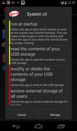 So, I've chosen to install many apps on my phone which may engage in some spyware functions or do other things to my Nexus 4 that I don't like. But I've got the upper hand, because I know how to disable some permissions from my apps. I'll show you how.