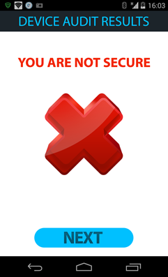 After launching SnoopWall for the first time and it tells you "You are not secure," you can choose a security mode.