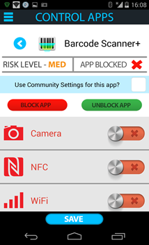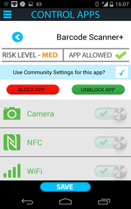 Her are the permission settings for another one of my apps, Barcode Scanner+.