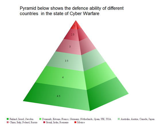Over years many countries have made this warfare controlled by their military. In 2015 researchers have released a Worldwide Security Assessment report that shows the progress of different countries to overcome this major threat of cyber warfare.