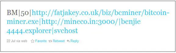 The botnet is increasing in complexity. In a previous article written with colleagues of security firm Group-IB, it was reported a botnet malware was recently found that spreads itself through hacked Twitter accounts and uses C&C. Placed there for communication between the bots, each of the infected machines are added to the Bitcoin mining ring, which helps the cybercriminals to get more Bitcoins with the help of new computational resources.
